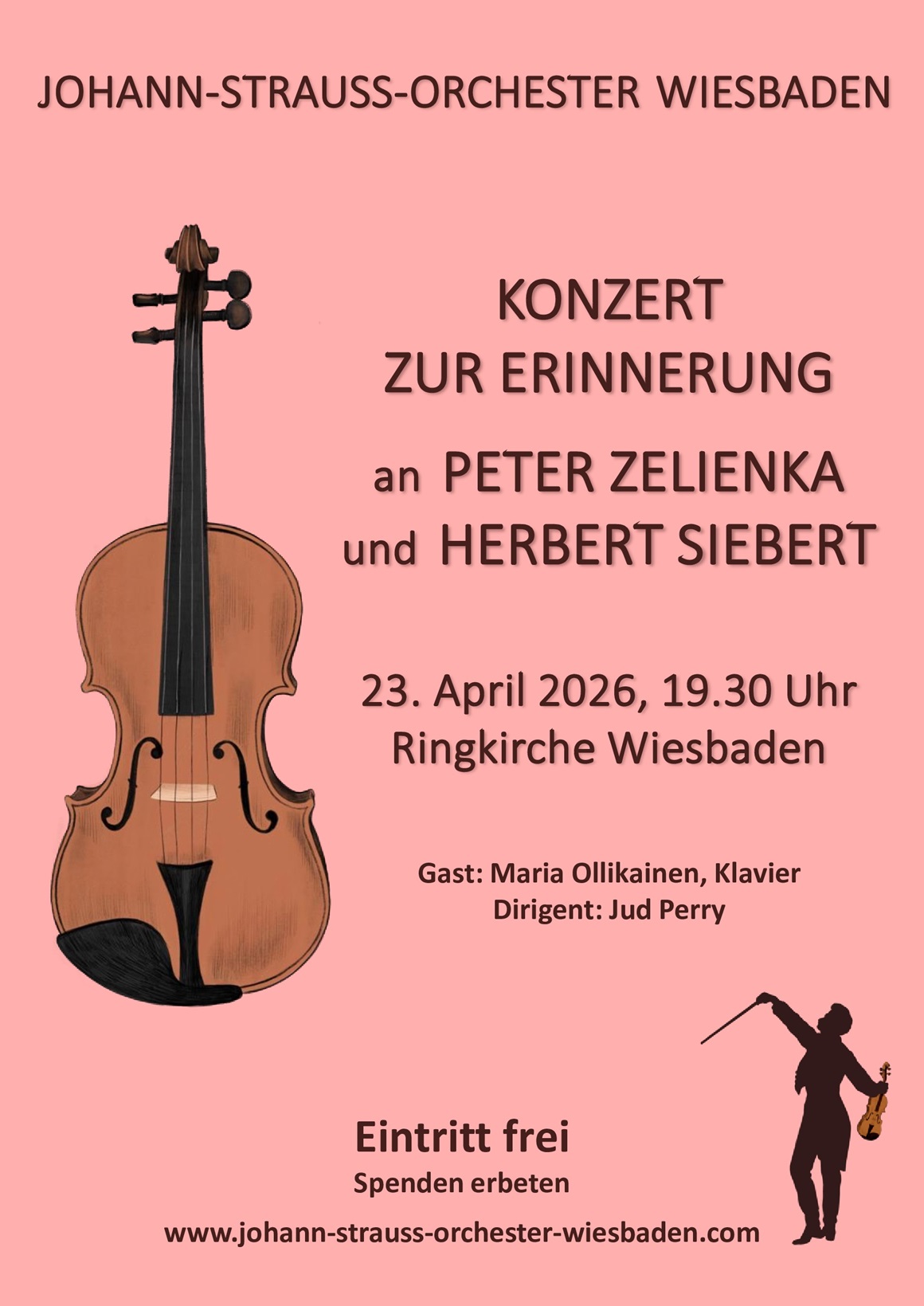 | Donnerstag, 23. April 2026 19.30 Uhr | Wiesbaden, Ringkirche | Konzert zur Erinnerung an Peter Zelienka und Herbert Siebert | Eintritt frei weitere Infos demnächst |